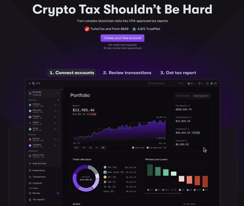 Ben Franklin said the only thing in life that’s certain is death and taxes. While cryptocurrencies wouldn’t be created for another 240 years, the same remains true today. If you have income from crypto, the tax man wants his chunk. Fortunately for you, we have compiled a list of the top crypto tax software to make the process as painless as possible